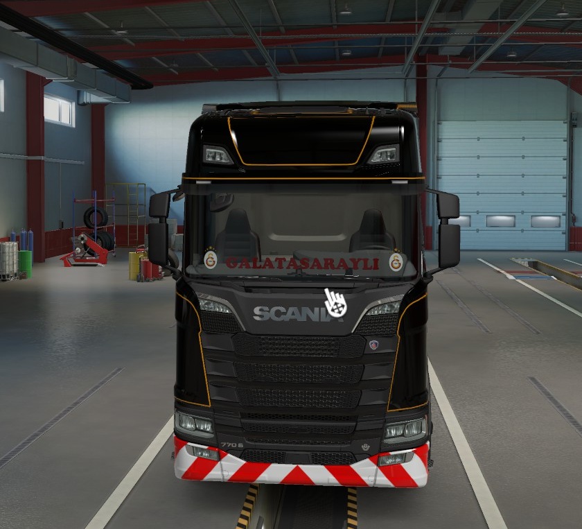 I’ve created a special window lettering mod for Galatasaray fans driving Scania trucks in Euro Truck Simulator 2. With its simple and stylish design that fits the windshield, it adds a true Cimbom (Galatasaray) vibe to your truck.