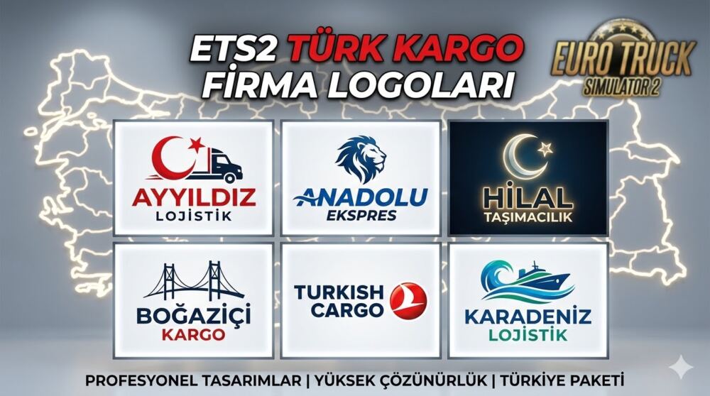 Take your Euro Truck Simulator 2 experience to the next level with our new Turkish Cargo Company Logo Pack! This meticulously crafted mod brings the realism of Turkish highways to your virtual garage. omixmod proudly presents a collection of highly detailed logos from iconic Turkish logistics giants. From the Bosporus to Anatolia, make your truck part of Turkey’s legendary transportation network. The pack features over 20 authentic logos, including Ayyildiz Lojistik, Boğaziçi Kargo, Anadolu Ekspres, Hilal Taşımacılık, and Karadeniz Lojistik, all fully compatible with standard SCS trailers. Compatible with all game versions, this is the definitive cargo logo mod for all Turkish truckers and ETS2 fans. Download now and dominate the roads!