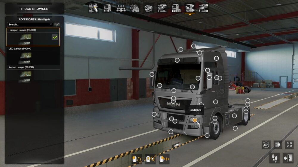 Added a choice of halogen or LED/xenon headlights for SCS trucks.