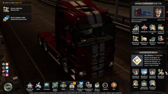 GARAGE 55 TRUCKS 50 DRIVERS 50 TRAILERS 10 MONEY 33.000.000 MAP EXPLORED 7.04%