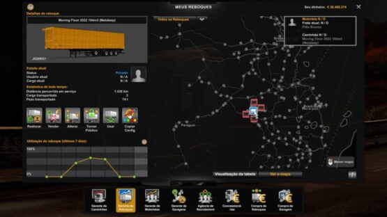 GARAGE 845 TRUCKS 60 DRIVERS 60 TRAILERS 10 MONEY 38.480.374 MAP EXPLORED 1.19%