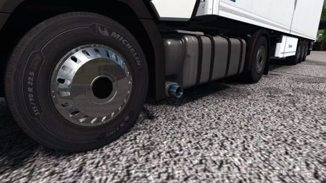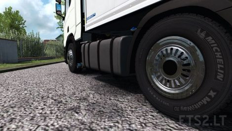 The modification adds to the game elegant chrome wheel caps with rectangular-rounded slots, suitable for installation on the wheels of both tractor and semi-trailer.
