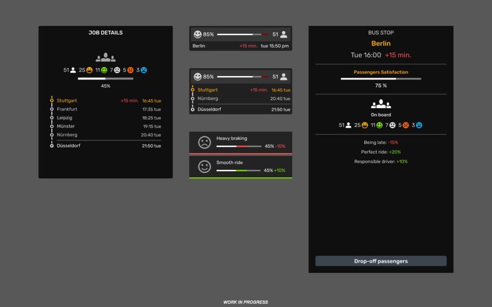 Satisfaction will be visible while driving, at stops, and after finishing a route. Boarding and exiting passengers will also show their current mood, helping players see how their driving style affects the people on board. The goal is to make passengers feel like individual people, not just numbers or progress bars.