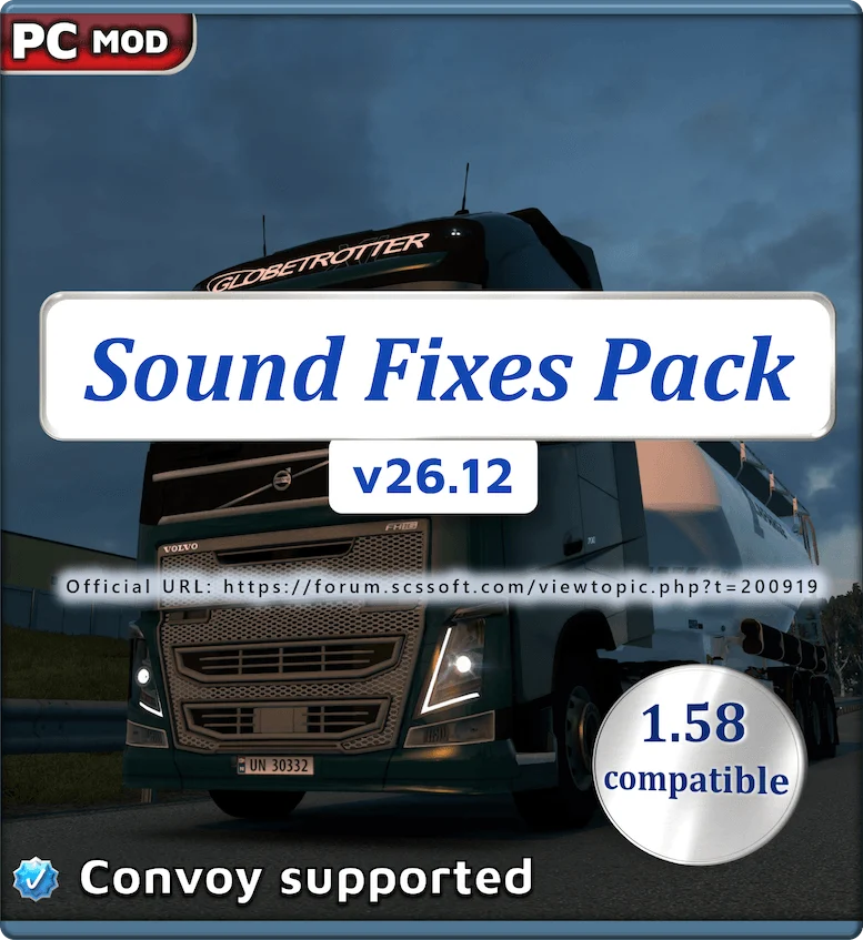 The SCS Forum link below for the Sound Fixes Pack holds all official download links and is open to suggestions and questions about the mod: